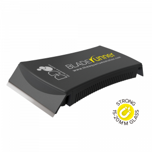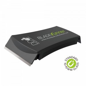 Entwickelt für den Betrieb auf zwei Klingen für minimalen Kontakt mit der Glas- oder Acryloberfläche, wodurch die Gefahr eines versehentlichen Kratzens verringert wird.